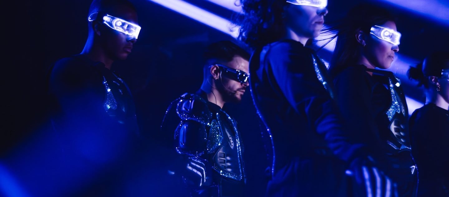 Worthy of the greatest American shows, Giorgio Besc places the emphasis on a millimetric staging with futuristic costumes and special effects surrounded by his dancers.